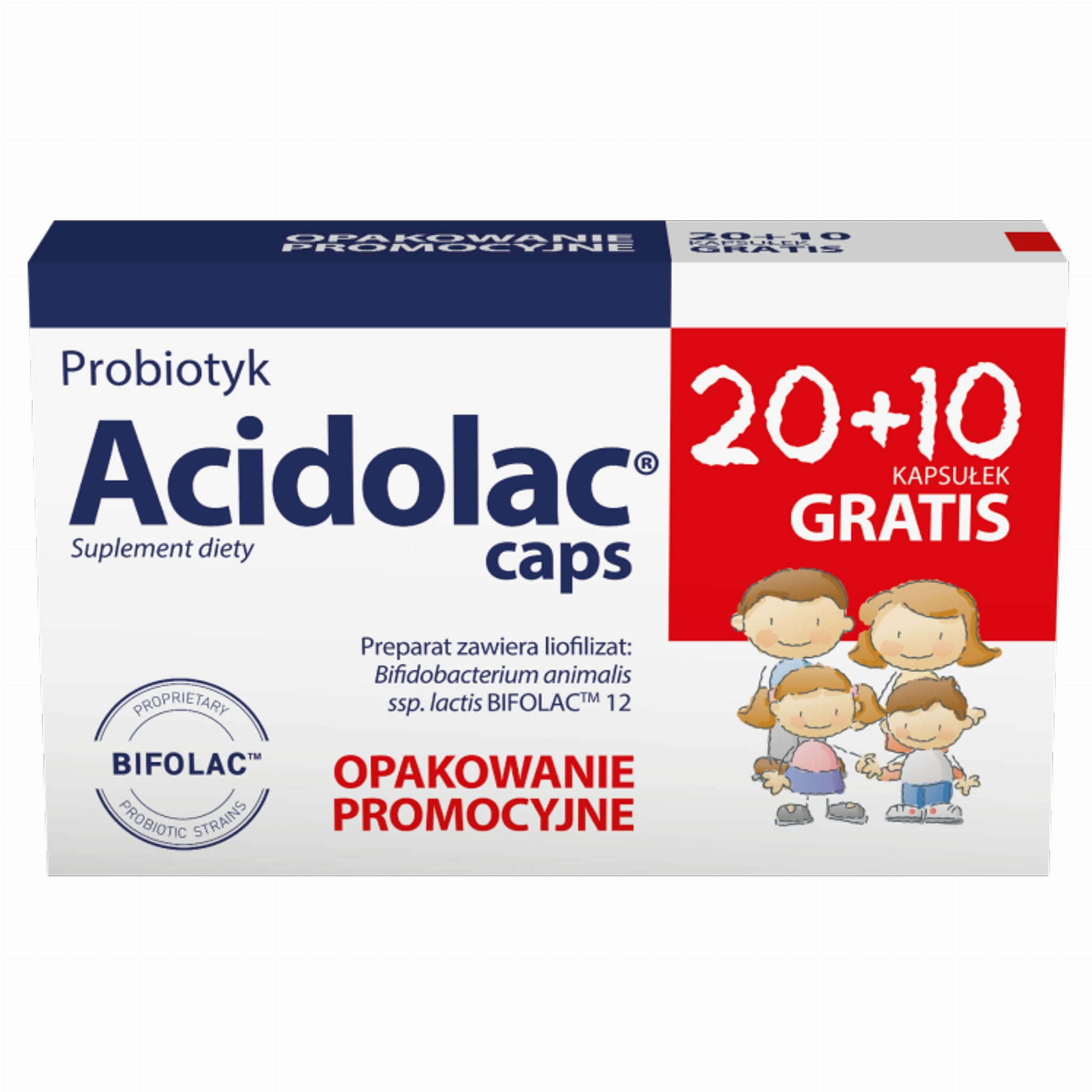 ACIDOLAC® CAPS jest suplementem diety zawierającym liofilizowane kultury bakterii kwasu mlekowego Bifidobacterium animalis ssp. lactis BIFOLACTM 12.