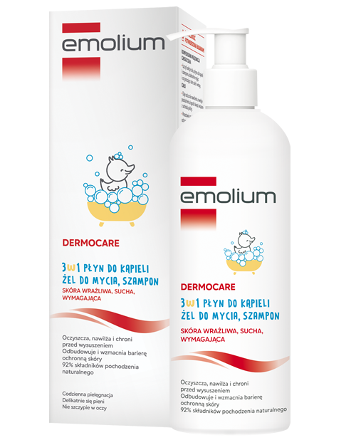 EMOLIUM DERMOCARE 3w1 Płyn Do Kąpieli - Żel Do Mycia - Szampon - 400ml