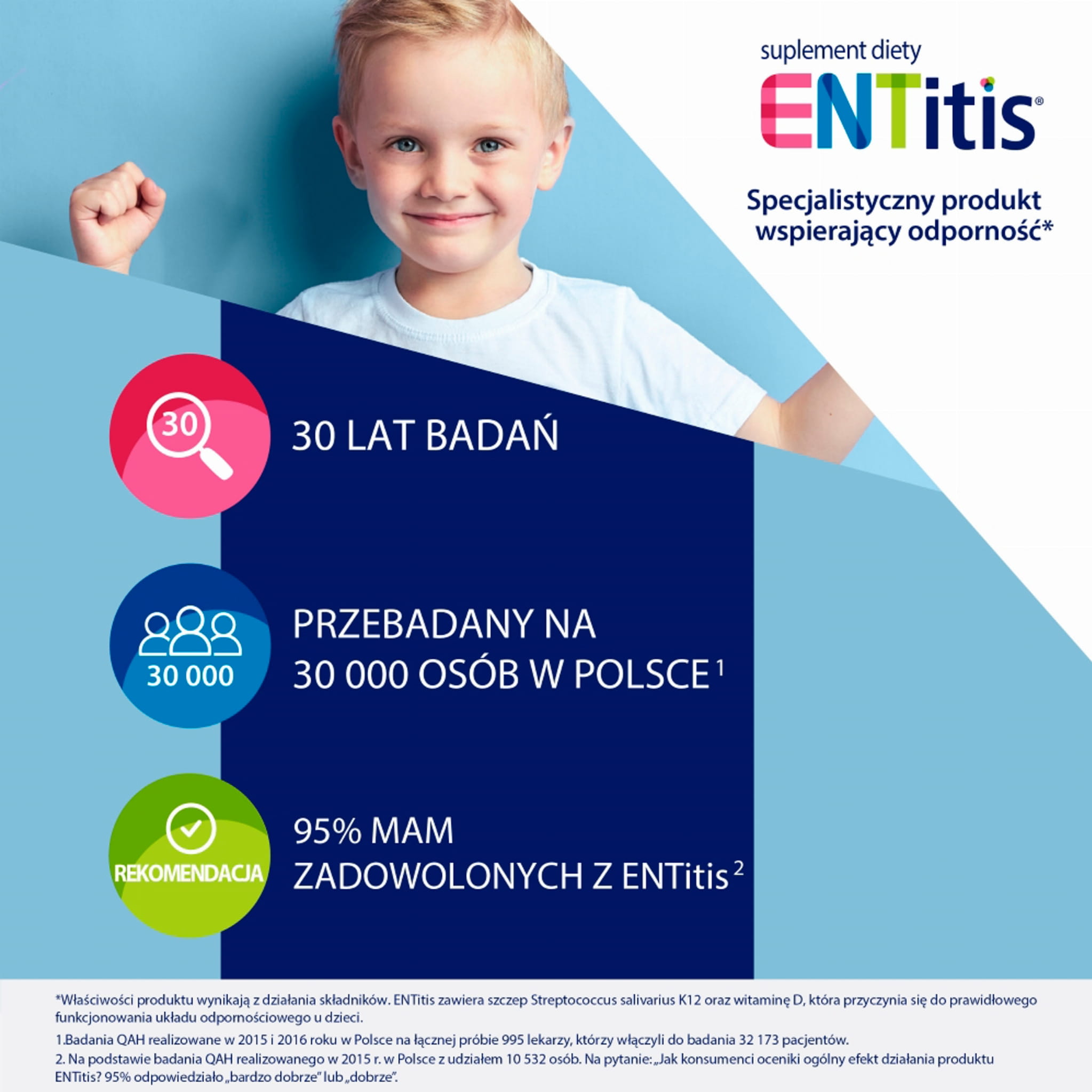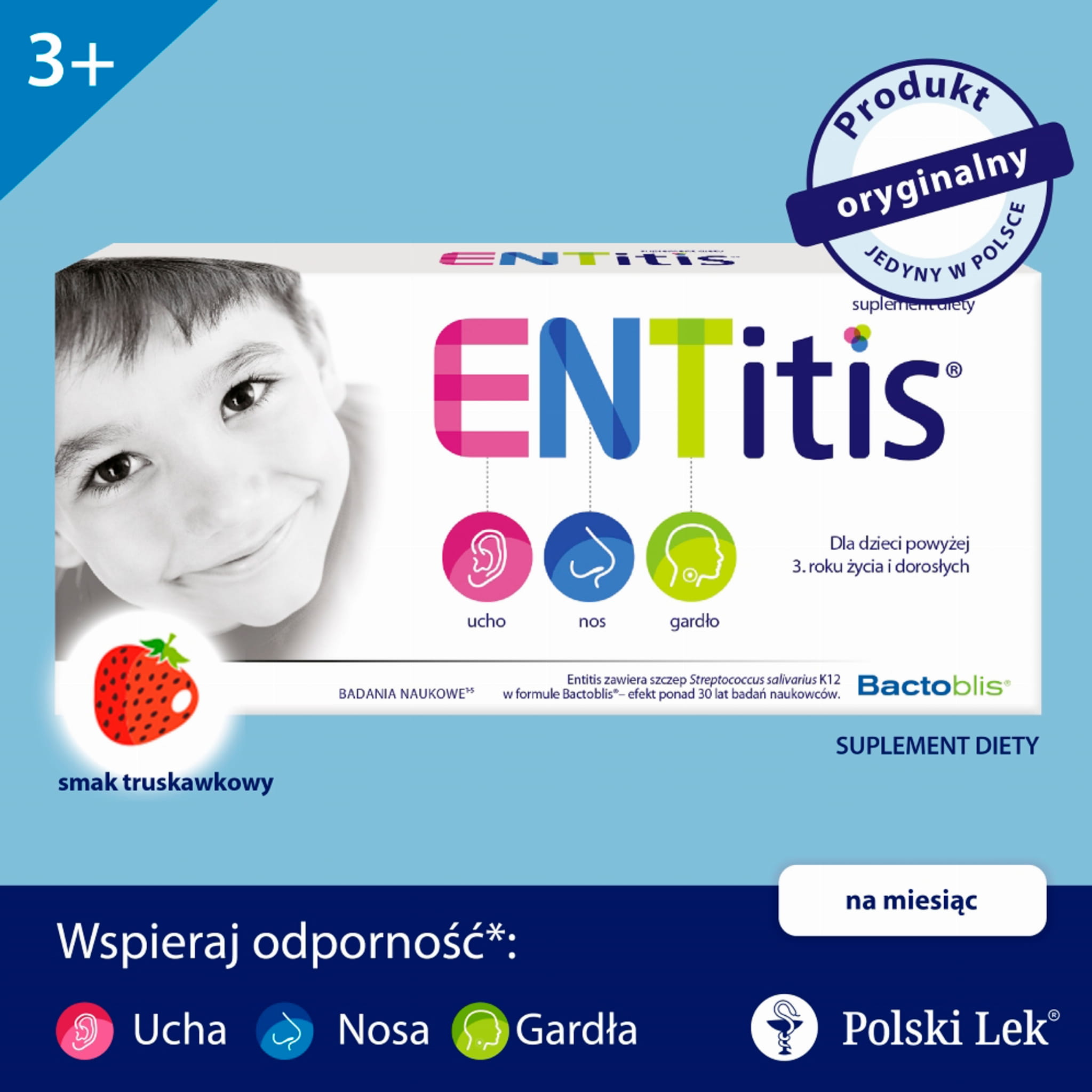 - *Entitis to jedyny w Polsce produkt zawierający szczep Streptococcus salivarius K12 w formule Bactoblis - efekt ponad 30 lat badań naukowców