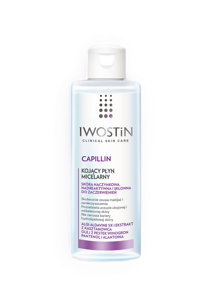 Kojący płyn micelarny IWOSTIN Capillin dedykowany jest porannej i/lub wieczornej pielęgnacji cery naczynkowej, nadreaktywnej i skłonnej do zaczerwienień. Należy przetrzeć skórę twarzy płatkiem kosmetycznym nasączonym płynem micelarnym. Jest odpowiedni dla skóry wokół oczu. Nie wymaga spłukiwania. Produkt przygotowuje skórę do dalszej pielęgnacji, a po jego aplikacji należy zastosować odpowiedni krem z serii IWOSTIN Capillin.