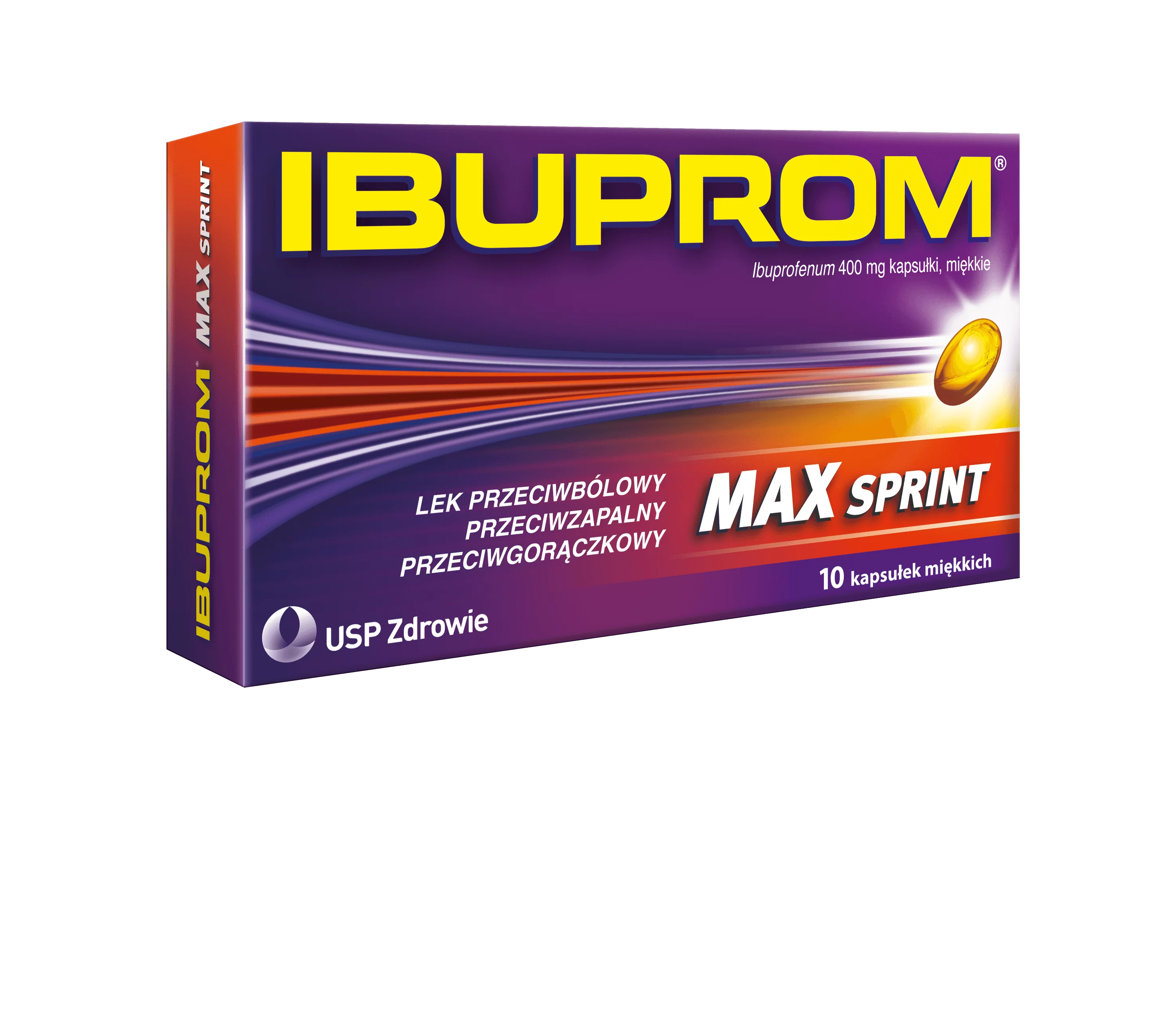 Tabl. powl. 200 mg i kaps. Sprint 200 mg. Bóle o różnej etiologii o nasileniu słabym do umiarkowanego, w tym: bóle głowy, bóle zębów, bóle mięśniowe, bóle okolicy lędźwiowo-krzyżowej, bóle kostne i stawowe. Bolesne miesiączkowanie. Gorączka (między innymi w przebiegu grypy, przeziębienia lub innych chorób zakaźnych). Tabl. drażowane Max 400 mg, kaps. Max Sprint 400 mg i tabl. powl. RR Max 400 mg. Ostre bóle różnego pochodzenia o nasileniu słabym do umiarkowanego: bóle głowy (m.in. ból napięciowy), migrena z aurą lub bez aury (objawy takie jak: ból głowy, nudności, nadwrażliwość na światło i dźwięk), bóle zębów, nerwobóle, bóle mięśniowe, bóle kostne i stawowe. Bolesne miesiączkowanie. Gorączka (m.in. w przebiegu grypy, przeziębienia lub innych chorób zakaźnych).