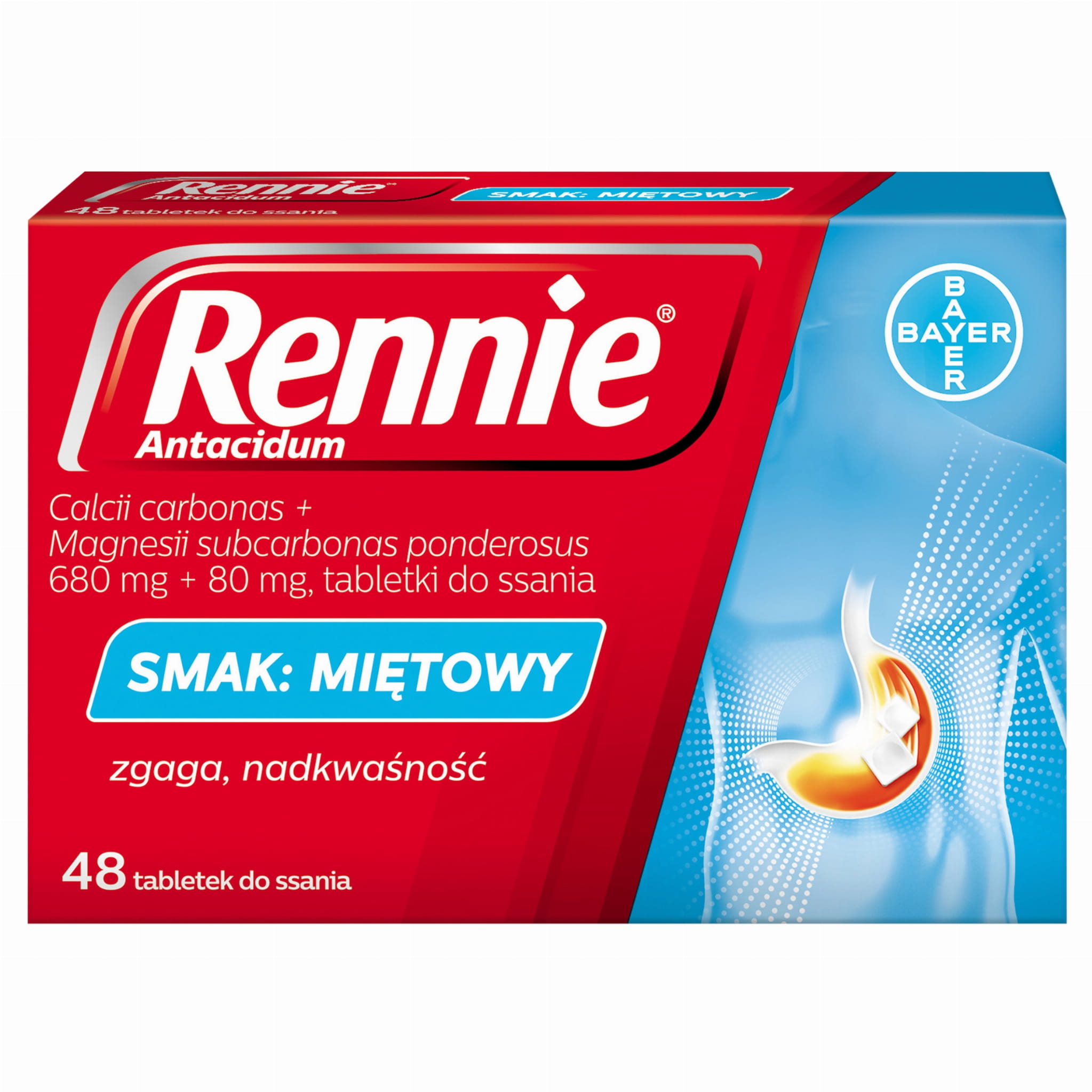 Lek ma postać tabletek do ssania o smaku miętowym i jest przeznaczony dla osób dorosłych i dzieci powyżej 12 lat. Rennie Antacidum może być stosowany przez kobiety w ciąży oraz karmiące piersią pod warunkiem stosowania zgodnie ze wskazaniami