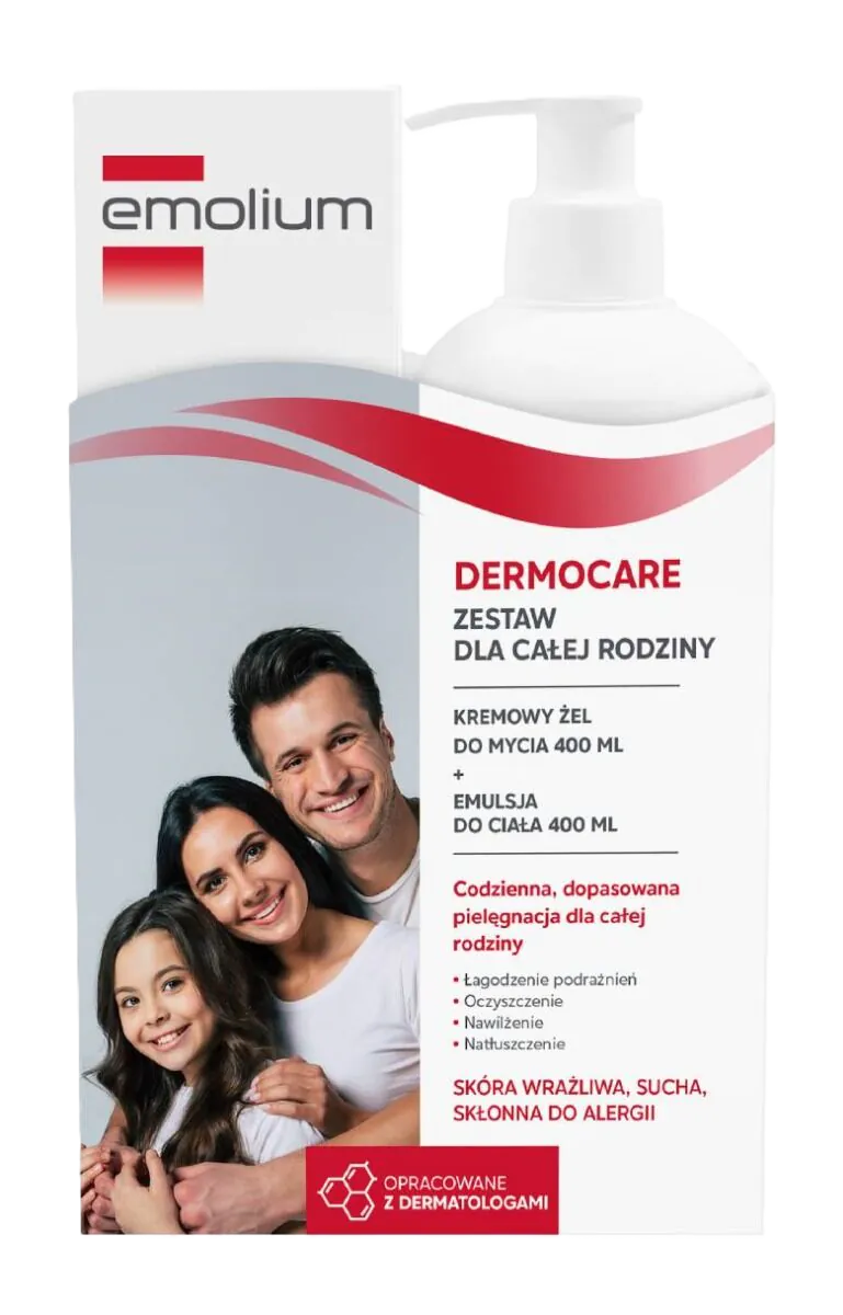 Zestaw EMOLIUM DERMOCARE Ochronna Emulsja do Ciała 400ml + Kremowy Żel do mycia 400ml